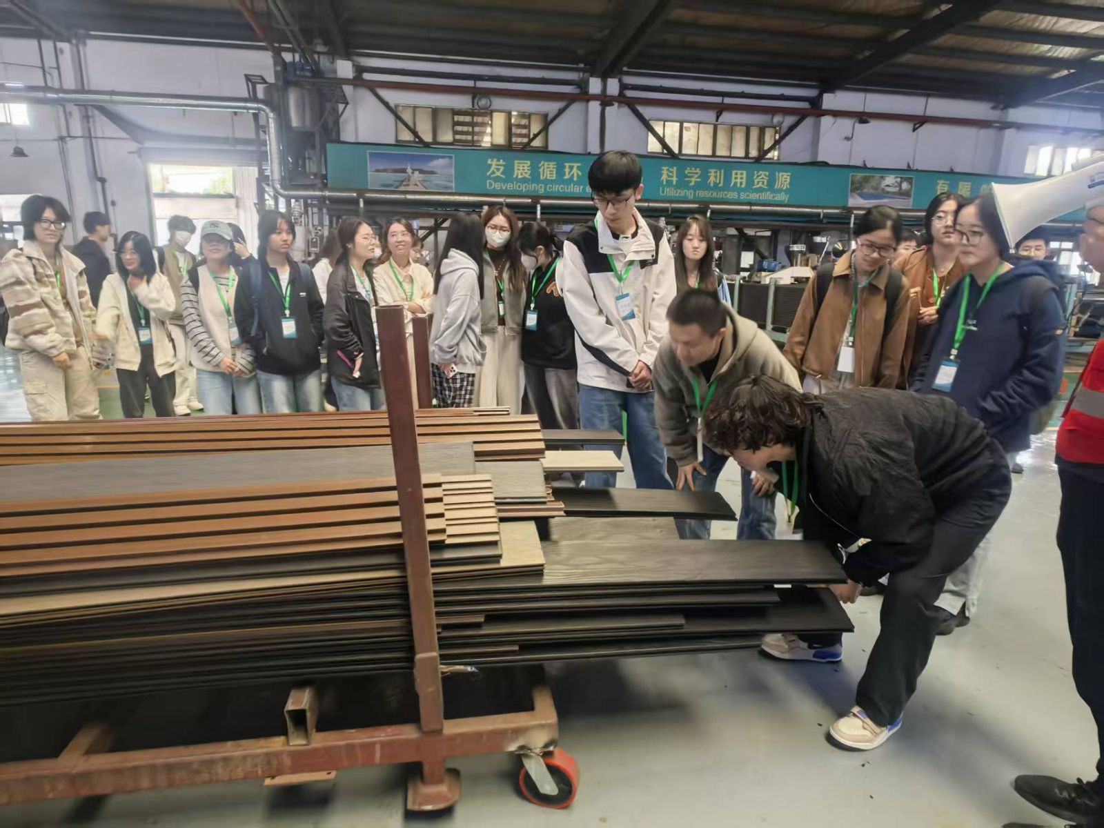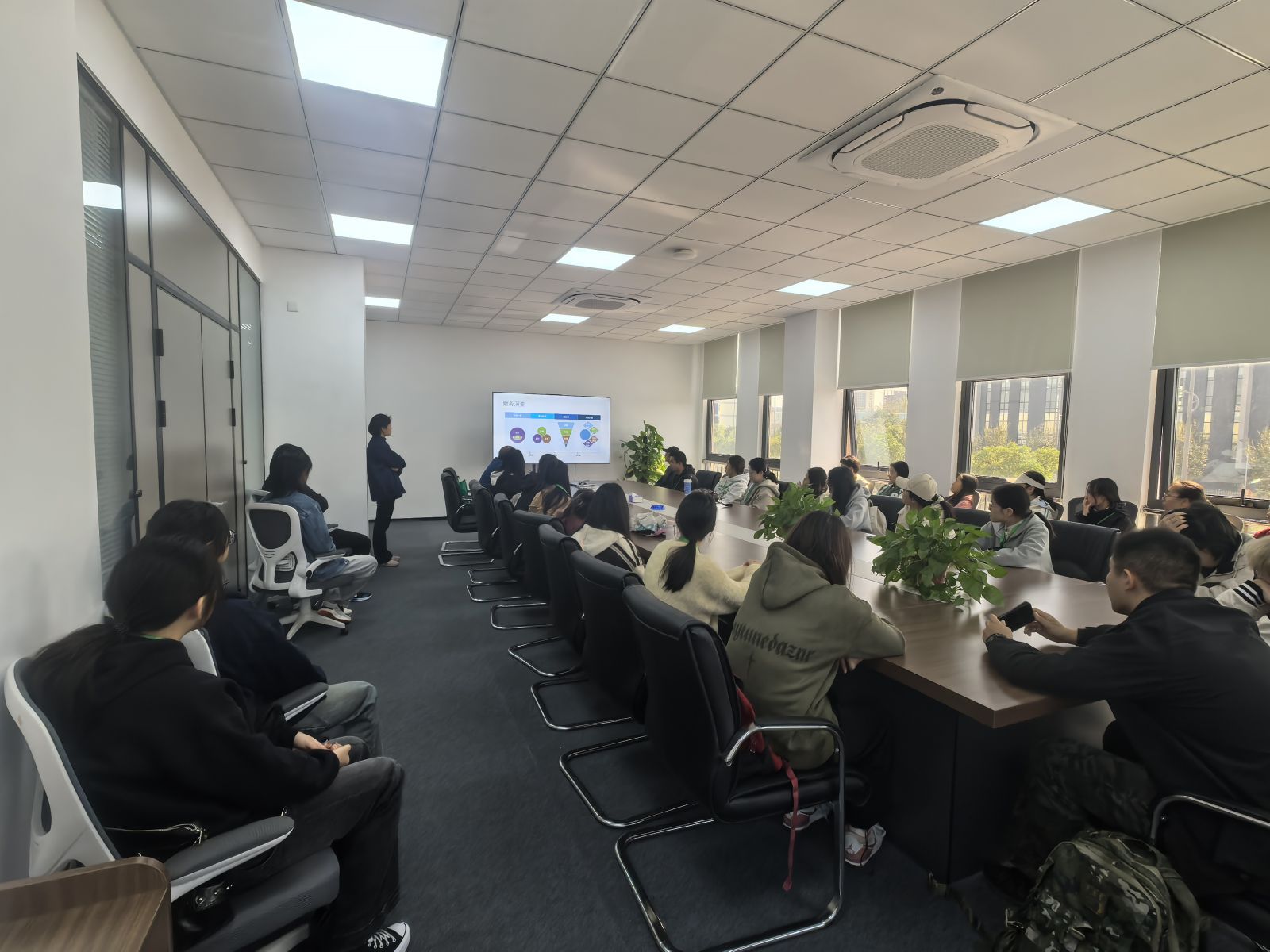 抵达公司后,先带领学生们参观生产车间。车间内机器有序运转,流水线作业规范流畅,学生们认真观察每一道生产工序,不时驻足记录观察,对企业的生产流程有了直观认识,也切实感受到理论知识与实际生产的关联。